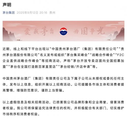 茅台发声辟谣:“50万开店”是骗局,背后存重大风险